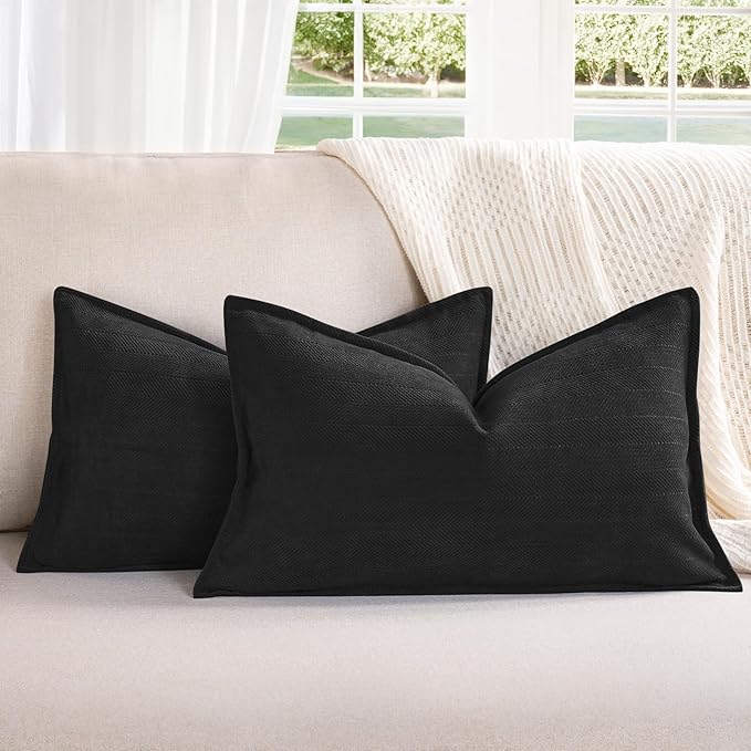 ZWJD Black12x20 Pillow Covers Set of 2 Chenille Throw Pillow Covers with Elegant Design Soft and Luxurious Decorative Throw Pillows for Couch, Bed, and Home Decor