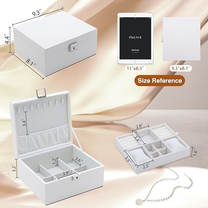 - Large Capacity Storage: Our jewelry box is double-layered design, the jewlery box provides ample storage space, allowing you to neatly organize your necklaces, earrings, rings, studs, bracelets, watches and more. The large jewelry organizers and storage keeps your jewelry together for easy organization and prevents losing anything