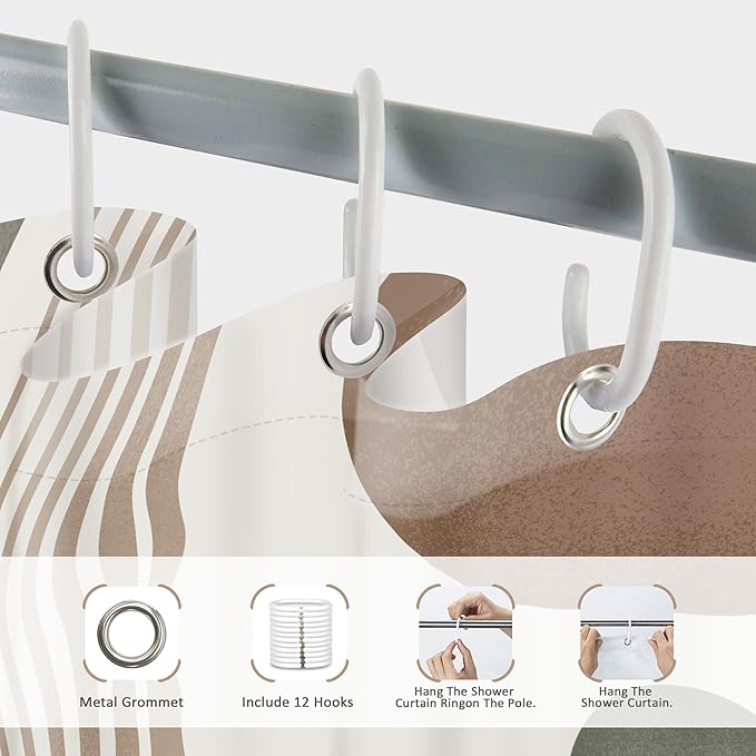 Glawry Boho Shower Curtain Brown Mid Century Abstract Plant Palm Leaves Modern Arch Curve Bathroom Minimalist Geometric Aesthetic 72Wx72L Inches Bath Accessories Art Home Decor Fabric 12 Pack Hooks