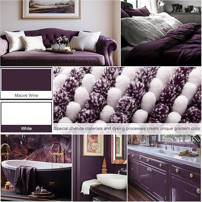 BSICPRO Bathroom Rugs and Mats Sets, 2 Piece Thick Absorbent Chenille Bath Mat Rug Set Non Slip, Soft Shaggy Bath Room Floor Mats for Bathroom, Machine Washable (Mauve Wine, 20" x 60" Plus 20" x 32")