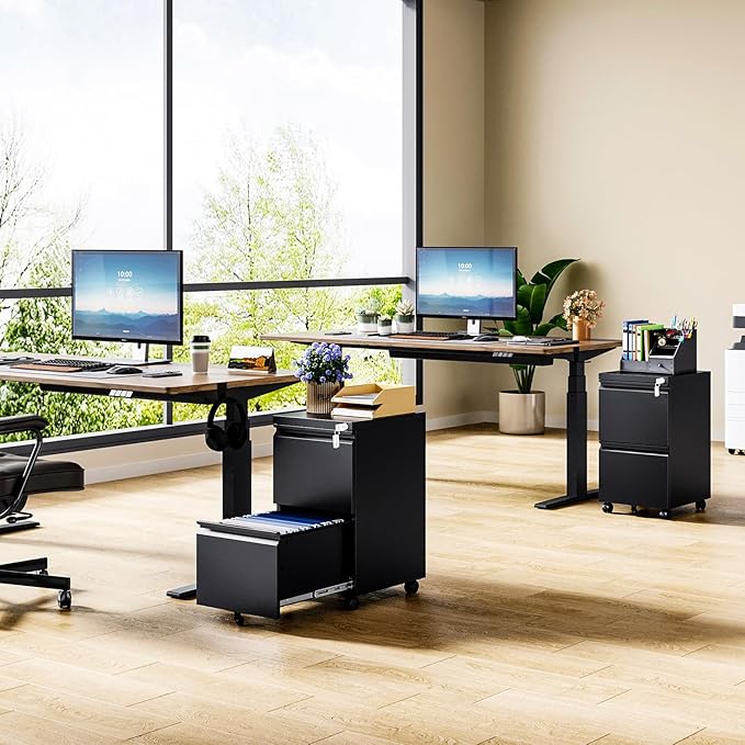- 【2-Drawer File Cabinet】: 2 large hanging-file drawers can accommodate letter, legal and A4 size files. Total height of this file floders cabinet is 27.8 inches, it can be placed under desk or beside, as a printer stand.
