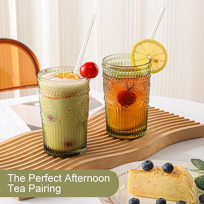 - PACKAGING DETAILS: This set includes 6 glasses, 6 glass straws, 1 cup cleaning brush and 1 straw cleaning brush, which can be put into the dishwasher for easy cleaning, meeting all your needs for entertaining friends or enjoying drinks at home