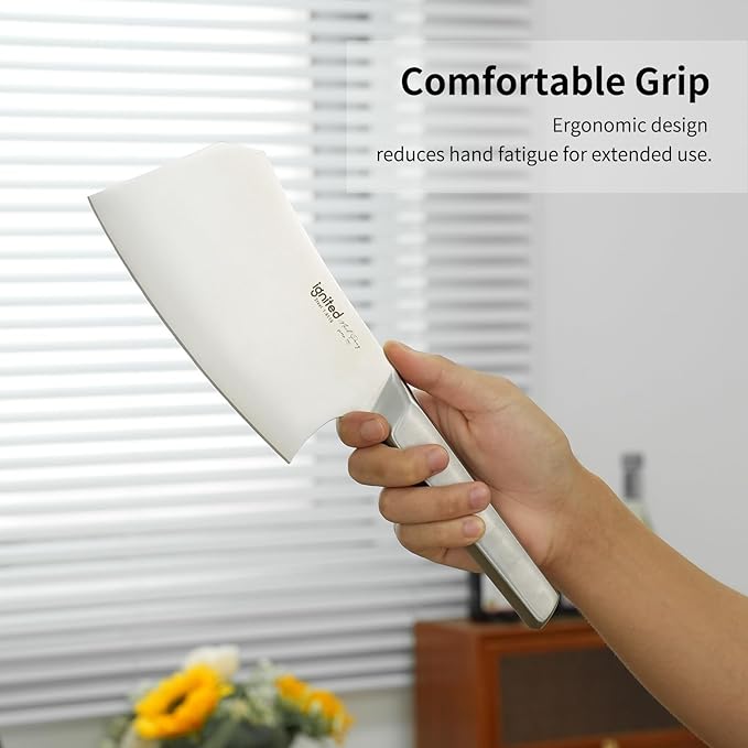 - Ergonomic and Comfortable Handle: The cleaver features a stainless steel handle that provides an easy grip and hassle-free maneuvering. The ergonomic design ensures superior comfort, and minimizes fatigue, making it ideal for extended use in busy kitchens.