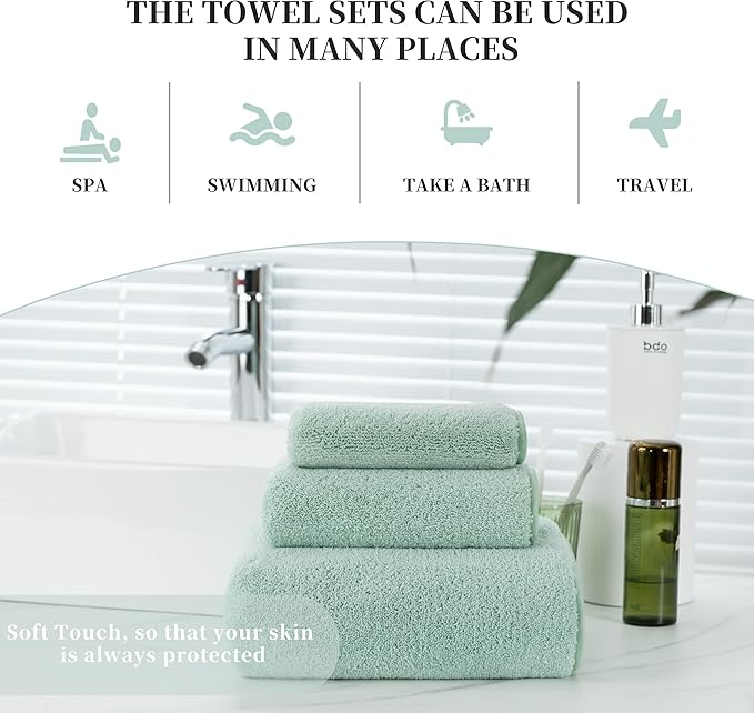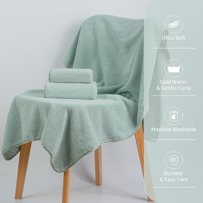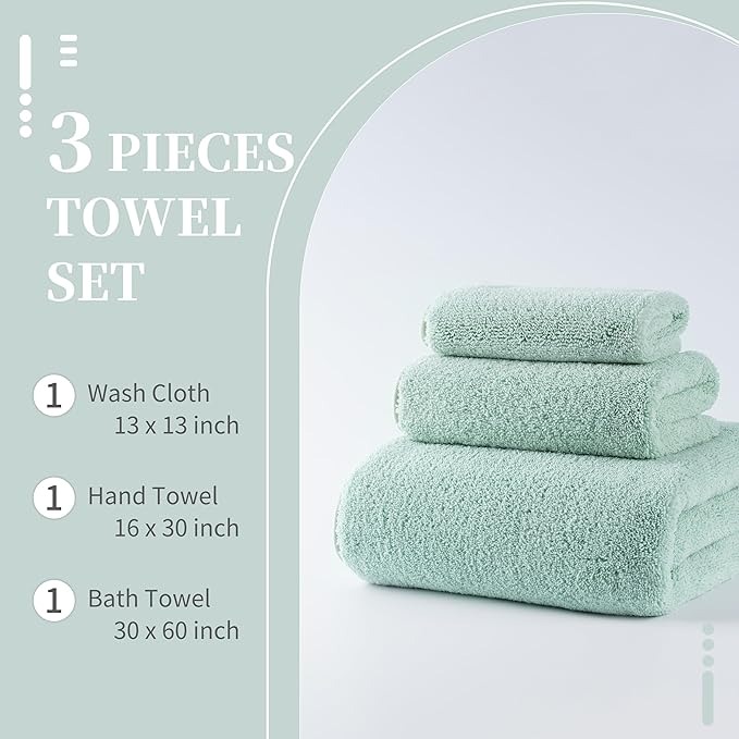 - Oversized 3-Piece Set: This set includes 1 bath towel measuring 30 x 60 inches (76.2 x 152.4 cm), 1 hand towel measuring 16 x 30 inches (40.6 x 76.2 cm), and 1 face towel measuring 13 x 13 inches (33 x 33 cm) for complete bathing needs.