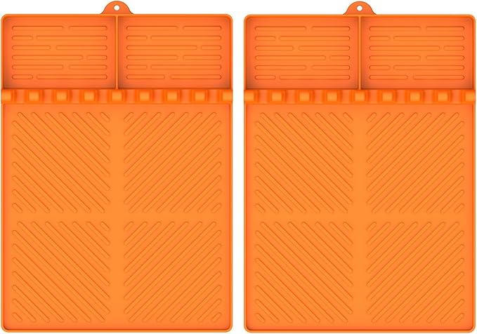 Silicone Griddle Tools Mat for Blackstone, Griddle Accessories Side Shelf Mat Grill Pad for Outdoor Grill Kitchen Counter Spatula Silicone Mat with Drip Pad (Orange (2Packs))