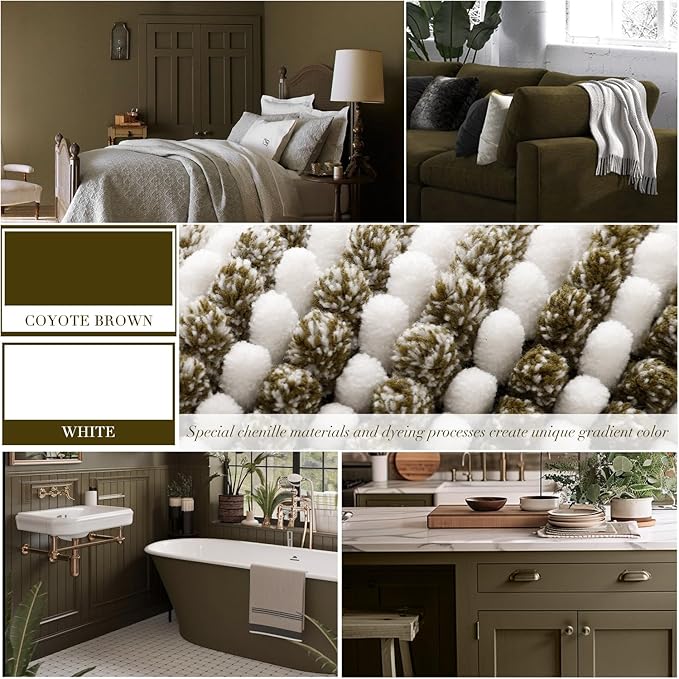 - 【EXTRA ABSORBENT BATHROOM RUG】: The luxury performance chenille microfibers can quickly absorb moisture from your feet when you step out of the bath or shower, and save your floors from dripping water, and dries quickly, making your feet feel the ultimate luxury enjoyment