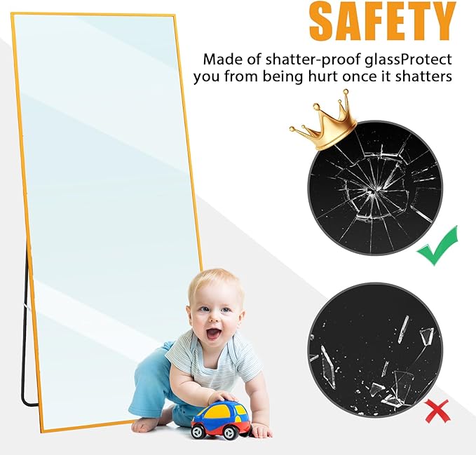 - High-Definition Reflections: Experience true-to-life reflections with our 68" x 29" mirror, made from ultra-clear, high-definition glass. This mirror ensures distortion-free imaging, allowing you to see yourself as the world sees you. The clarity and brightness of the reflection make it ideal for detailed grooming or outfit coordination, enhancing your daily routine.