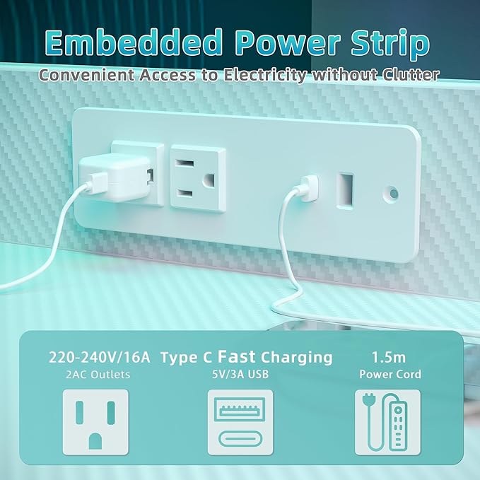 - Fast Charging Power Outlet: This power outlet features two sockets, one USB port, and one Type-C fast charging port. It allows you to conveniently charge your phone, tablet, and other electronic devices while keeping your desktop neat and organized.