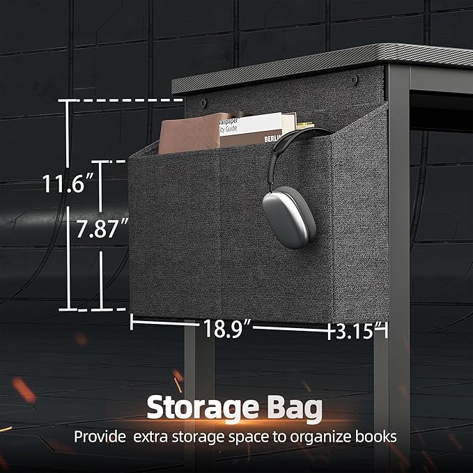 - Carbon Fiber Surface: Our desk features a carbon fiber desktop design, enhancing the gaming ambiance for a more immersive experience. This sleek and durable surface adds a modern touch to your gaming setup.