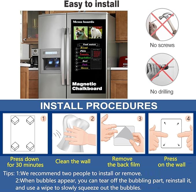 - 【DIY Chalkboard Wall 】Backing paper printed with grid lines for guiding straight cuts. Precisely cut the magnetic blackboard into any size you want. Can be used as a memory photo wall, graffiti wall, education wall, to-do list, wedding signs, classroom presentation, Kitchen Menu, and making chalkboard calendars and weekly plans.