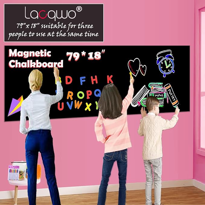- 【Magnetic chalkboard paper self adhesive and service】The magnetic chalkboard roll is 0.6mm thick, 5 times thicker than traditional blackboard wallpaper, and can be easily attached to the wall without air bubbles. Just simply peel and stick to turn any smooth and texture-free surface into a magnet receiving plate for kids. As a Lacqwo valued member, 7/24 Professional team to solve your problems.
