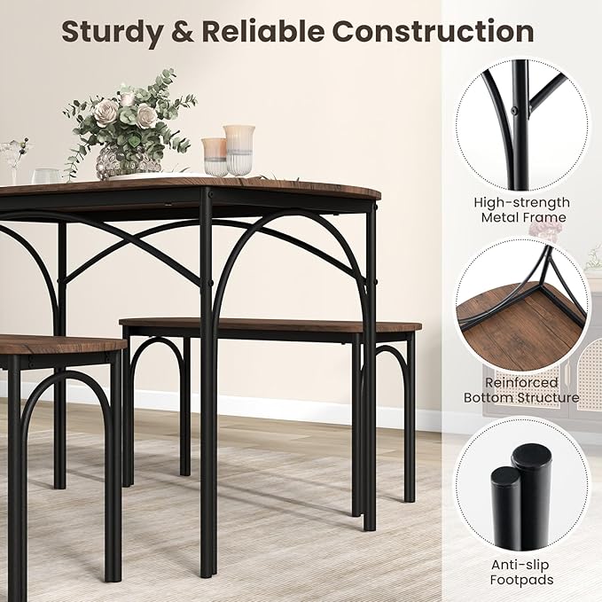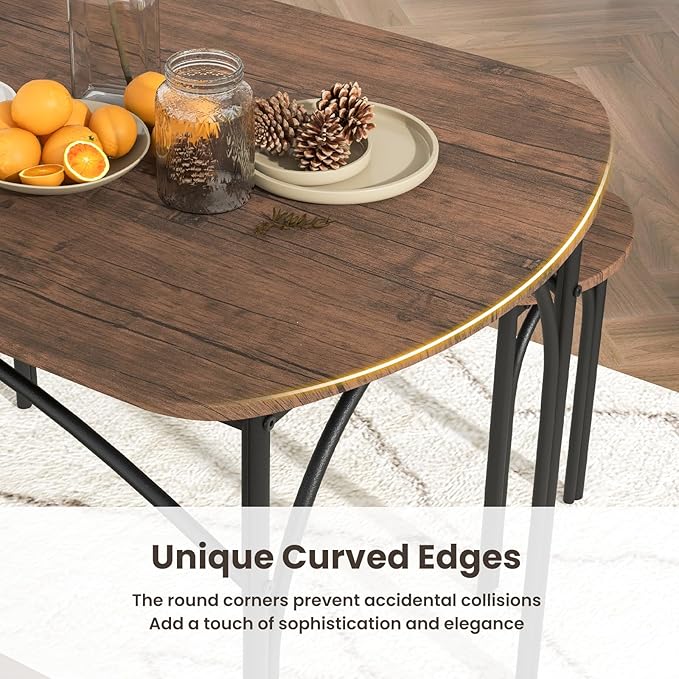 - Industrial Style Appeal: With the combination of rich brown wood grain finishes and striking black metal frames, this kitchen table set exudes an industrial charm. Moreover, it adopts unique curved edges, adding a touch of sophistication and elegance to your living space.