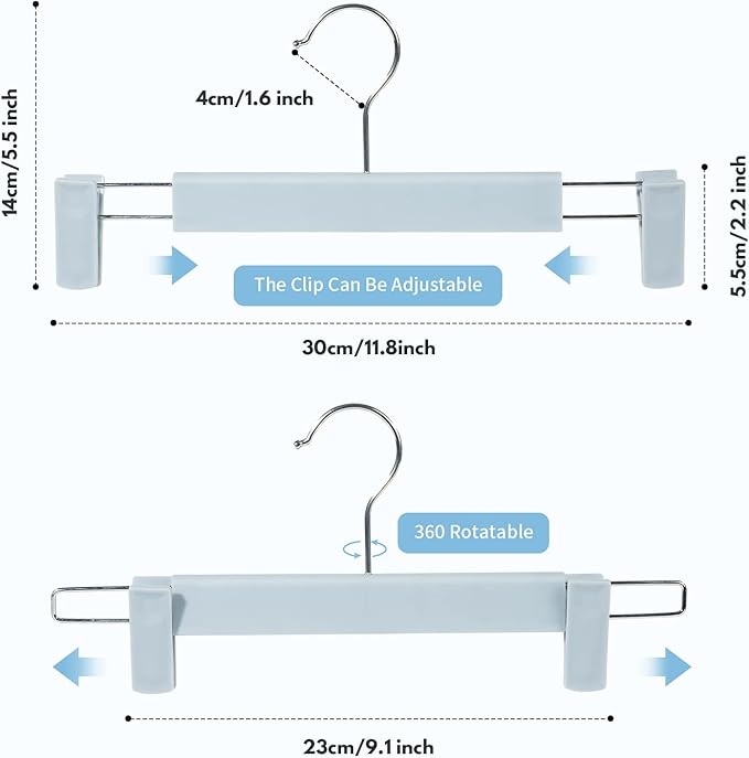 - 【Excellent Design】- There are movable clips at both ends of the hanger, which can be adjusted from 21cm to 28cm.It's convenient for you to clip different clothes.Besides, the clip has a non-slip design, that can clip your clothes and avoid clothes falling.
