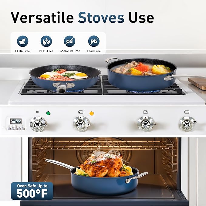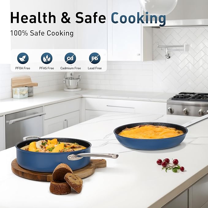 - 【Healthy Coating】: Non-stick cookware using plasma titanium and other high-tech composite material surface treatment, completely free of PFAS, PFOA, and other harmful substances, have better wear resistance and high temperature resistance performance