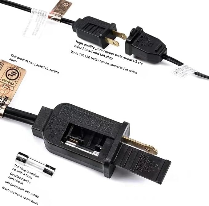 - 【Durable Construction】: Featuring a sturdy black wire and long-lasting LED bulbs for reliable and energy-efficient illumination. The plug-in LED light string has a built-in spare fuse (125v or 5a) that can be easily replaced. If a bulb goes out, it will not affect other bulbs.