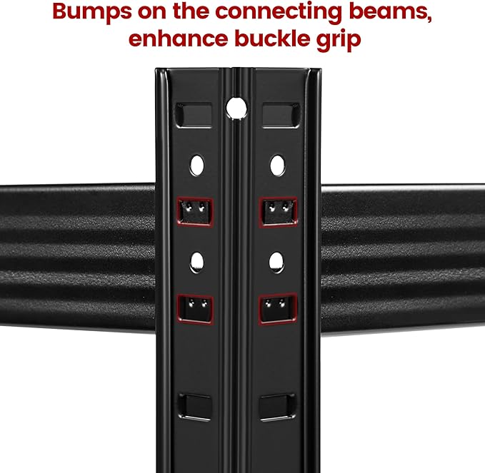 - Reinforced Beam Connection: Designed for everyday storage needs, this shelving unit features raised bumps on the connecting beams to enhance buckle grip during assembly. The reinforced structure enhances overall stability, providing a more secure and long-lasting solution for organizing your space