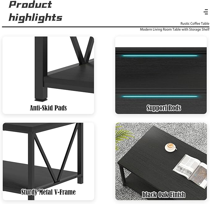 - Modern & Industrial Coffee Table: The rustic black wood grain surface and minimalist black metal frame create a modern, industrial style that complements any living room, reception area, or small spaces. Perfect for center, cocktail, or tea table use