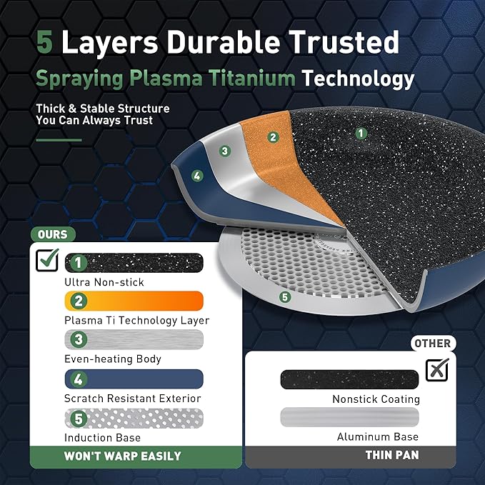 - ๐๐ค๐ฅ ๐๐๐ซ๐๐ก ๐๐ก๐๐จ๐ข๐ ๐๐๐ฉ๐๐ฃ๐๐ช๐ข ๐พ๐ค๐๐ฉ๐๐ฃ๐: Unlike other ceramic & granite coatings, the Kitchen Academy Ti coating is reinforced with titanium particles for better durability and resistance to abrasion