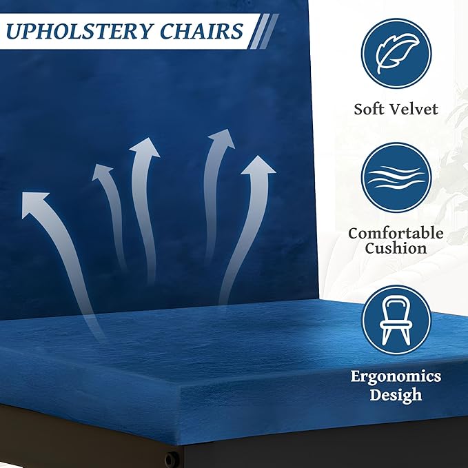 - Comfortable Velvet Chairs: The velvet chairs in this 5 piece dining table set are made of high-quality velvet material, offering a soft and comfortable touch. The high back design provides excellent support, ensuring a comfortable dining experience for you and your family. The blue chair covers perfectly complement the marble-patterned tabletop, creating a sophisticated and harmonious look.