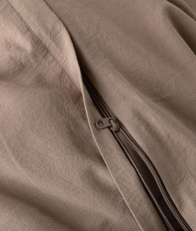 JIYUAN 100% Washed Cotton Duvet Cover Set 3 PCS Super King Plus, 1 Duvet Cover 120x120 Inches(Comforter Not Included) and 2 Pillowcases,Linen Feel Bedding Set Comfy and Breathable,Light Brown
