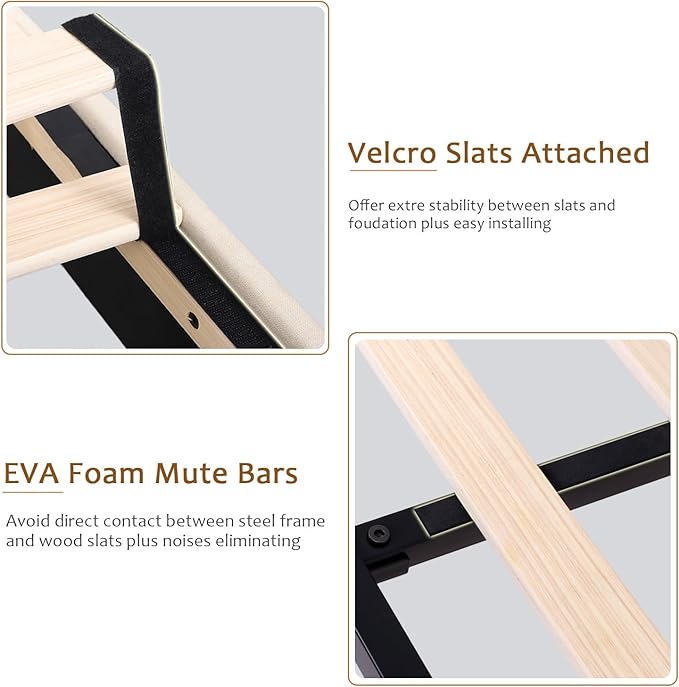 - Silent Design: To ensure a quiet sleeping experience, the tufted bed frame uses Velcro-secured wooden slats and noise-reducing strips to minimize friction noise, eliminating squeaks and unnecessary movement. Enjoy quiet and stable sleep every night