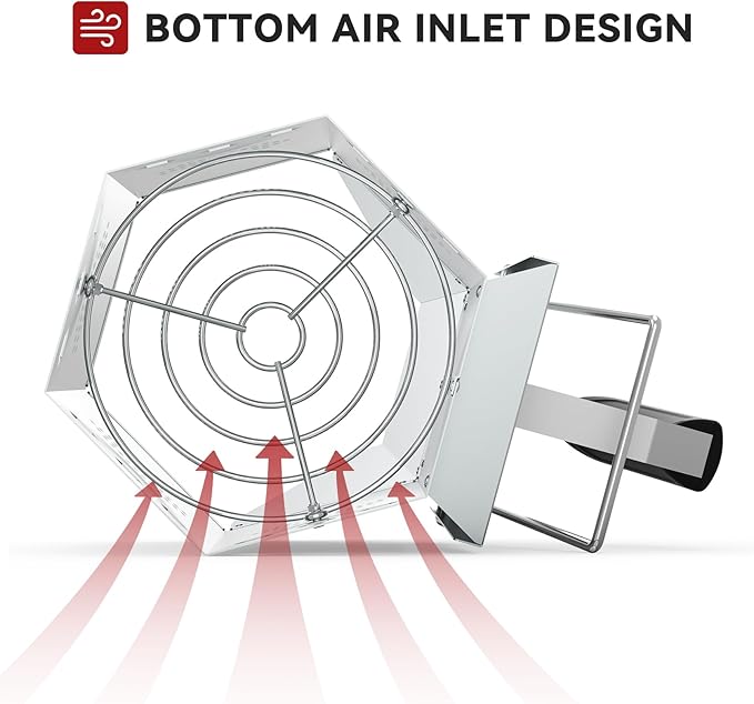- Safe Protection Design: Heat shield prevents your hands from getting burnt and an extra metal handle is attached to pour out the hot coals in a controlled manner! In addition, there is a deflector at the top above the handle. It will save you some heat after you've started the charcoal as it deflects the flame away from your hand.