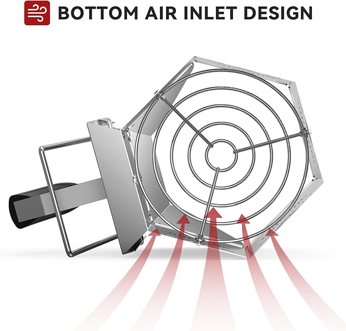 - 【Fast Burn and Super Large Capacity】Side holes ensure that air circulates through all the charcoal for even burning. Ventilation at the bottom allows for smoother air circulation, thus ensuring that food cooks evenly. Fill capacity approx 2.8 kg/6.17 lbs (briquettes). It is larger than the Chimney Starter capacity in the market.