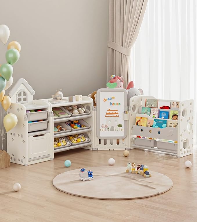 - 【Promote Baby's Mental Growth】: 01. Psychological perspective 1-6 years old is the baby's "space-sensitive period", a space belonging to the baby, can give the baby a full sense of security. 02. Parent-child perspective Cultivate the parent-child relationship, promote the baby's enlightenment and growth, and build the baby's small world of fun. 03. Growing Angle House-shaped fun storage exercises the baby's ability to explore independently, stimulate potential, more focused, and more confident.