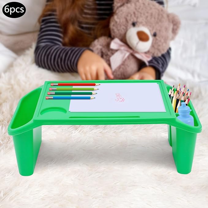 6 Pcs Kids Lap Desk Tray, Plastic Breakfast Lap Desk Trays with Side Pockets and Slot, Portable Lap Table Snack Tray for Eating, Writing, Drawing, Game, 19.69" L x 9.84" W x 7.1" H (Green*6)