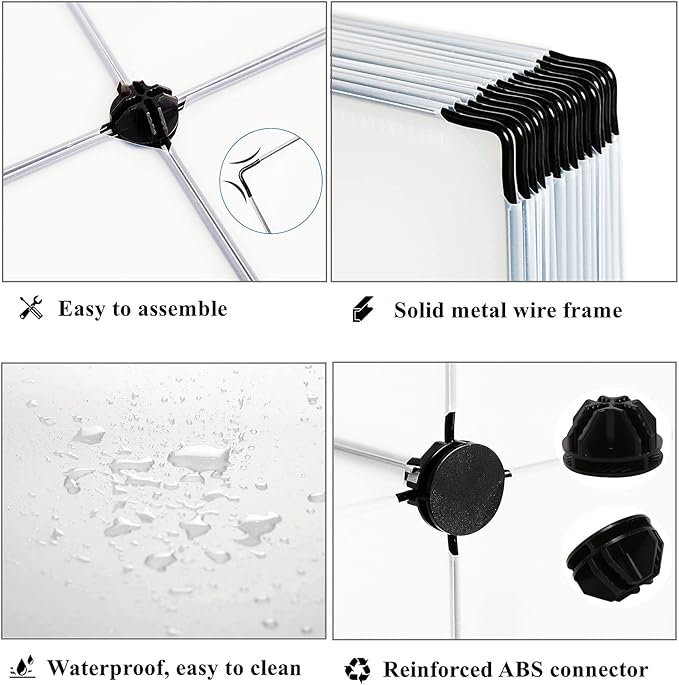 - Size & Material: Each cube size is 16.5" x 12.6" x 12.6", consisting of polyethylene plastic panel, sturdy metal frame and ABS resin connectors. Each cube can hold up to 11 LBS