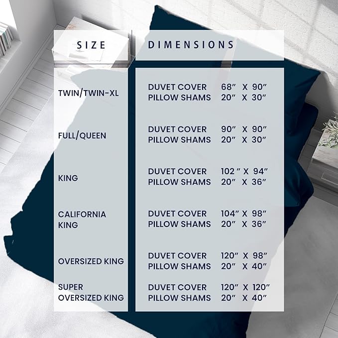 - SUPER KING PLUS/SUPER OVERSIZED KING SIZE DUVET COVER ONLY – LUXURY HOTEL QUALITY: Includes 1 Super King Plus/Super Oversized King Size Duvet Cover (120" X 120") only - DESIGNED FOR EXTRA LARGE INSERTS ONLY. COMFORTER NOT INCLUDED. Recommended Insert Size: Fits upto 118"x118" inserts . Not compatible with standard King inserts. Please check your insert size before ordering.