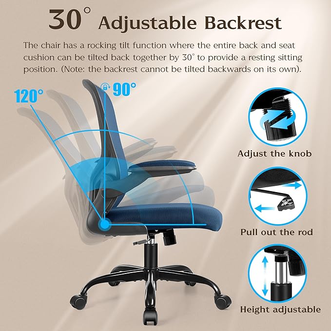 FelixKing Office Chair, Ergonomic Desk Chairs with Wheels Home Mesh Chair Adjustable Lumbar Support and Height, Ergo Chair for Working Gaming Use (Navy Blue)