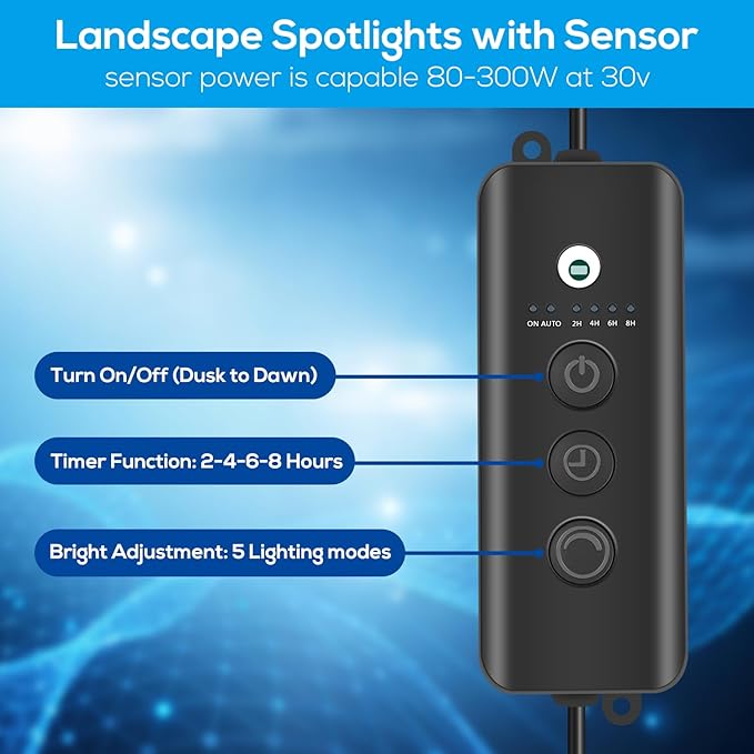 - 【Dimmable & Timer Features】ZYAN waterproof outdoor landscape lighting kit adjust the brightness to suit any occasion and set the timer to automatically control the lights for 2, 4, 6 or 8 hours.