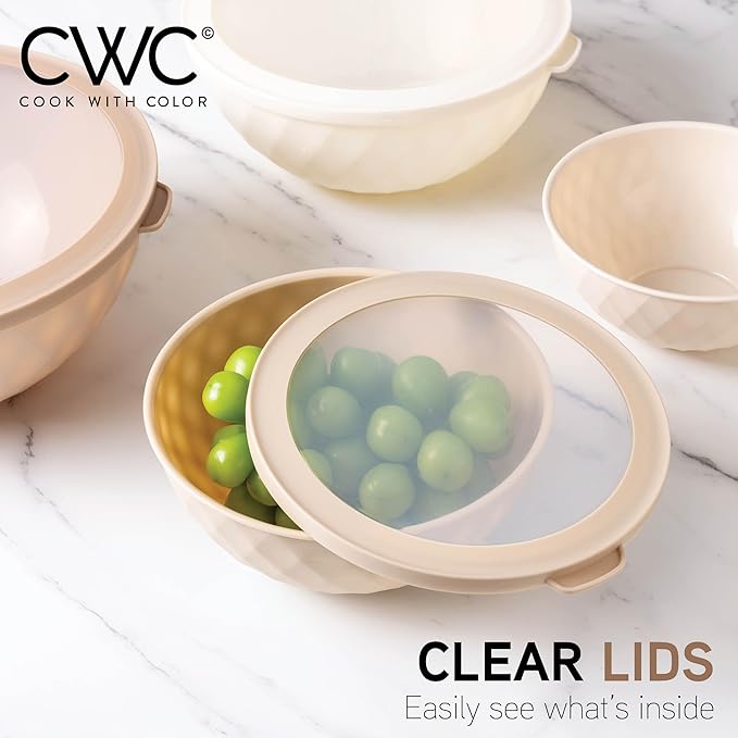 COOK WITH COLOR Mixing Bowls with Lids - 12 Piece Plastic Nesting Bowls Set includes 6 Prep Bowls and 6 Lids, Diamond Design - Microwave Safe