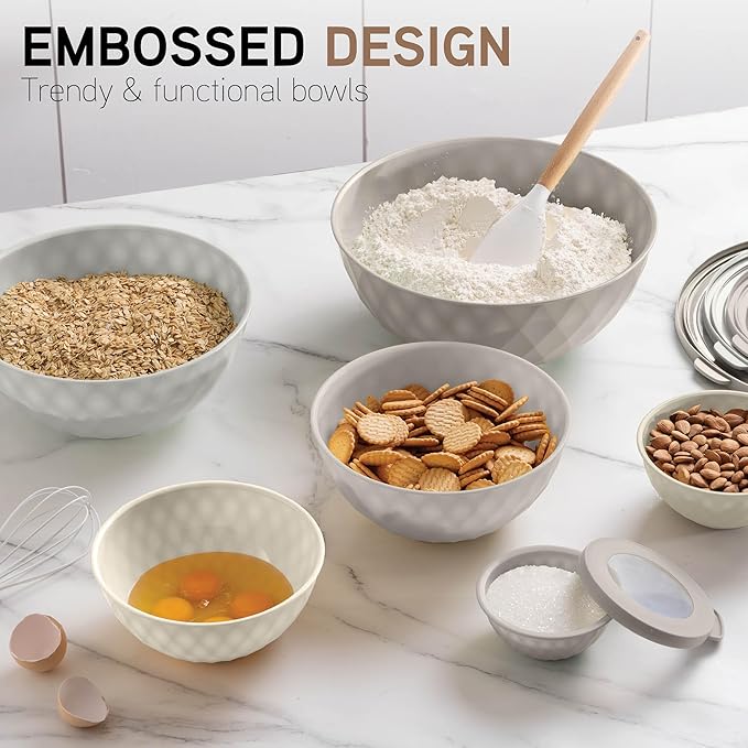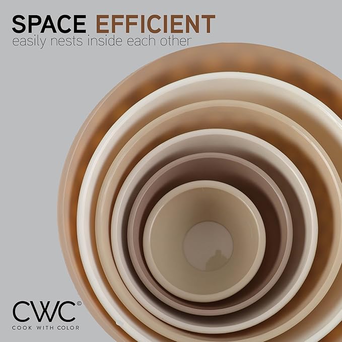 - 12 Piece nesting bowl set - a practical set of easy to clean kitchen bowls that can be used for food prep, serving, and storing.