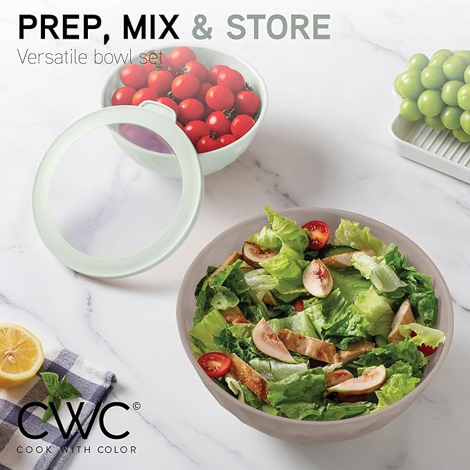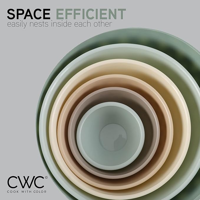 - 12 Piece nesting bowl set - a practical set of easy to clean kitchen bowls that can be used for food prep, serving, and storing.