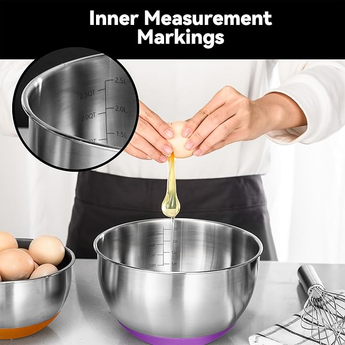- 【Nested Design for Space Efficiency】: This set of five mixing bowls is designed to nest within each other, saving valuable cabinet or drawer space in your kitchen. The variety of sizes ensures you have the perfect bowl for any task.
