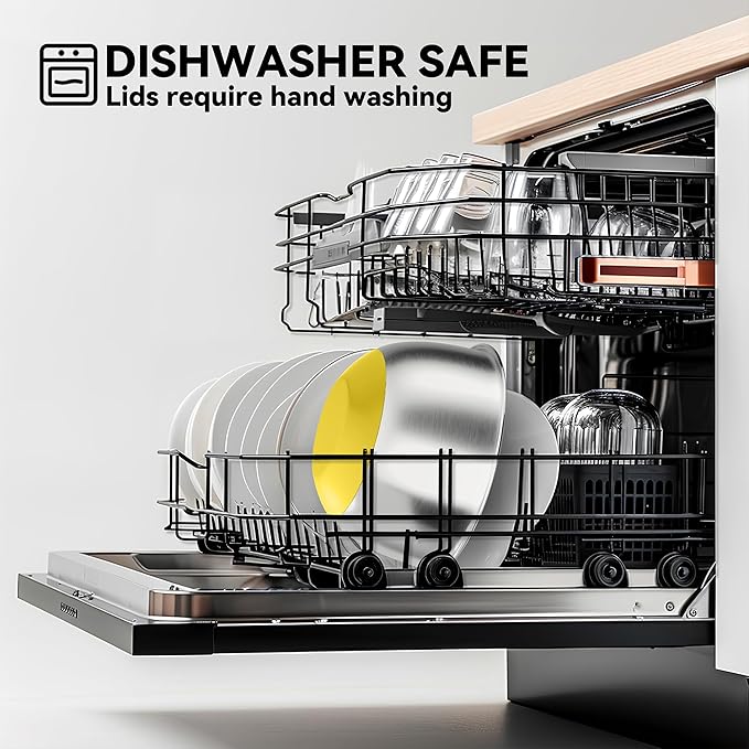 - 【Easy to Clean】: Made from quality stainless steel, these bowls are dishwasher safe (excluding lids), offering hassle-free cleanup so you can spend more time enjoying your meals.