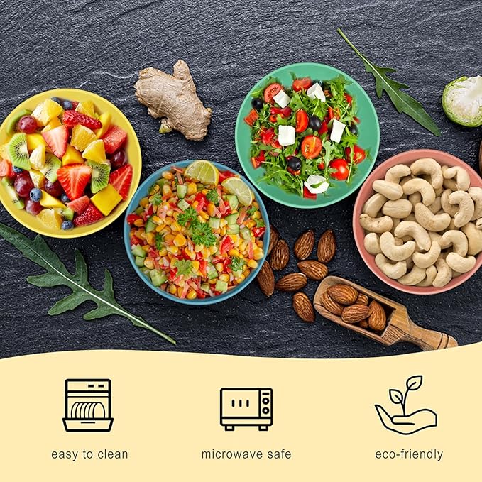 - [Elaborate Design]:Upgrade your dining experience with our wheat straw bowls! We've enhanced the design with thicker and smoother rounded edges, providing a comfortable hold. The 26 oz capacity is perfect for everyday use at home, work or school.