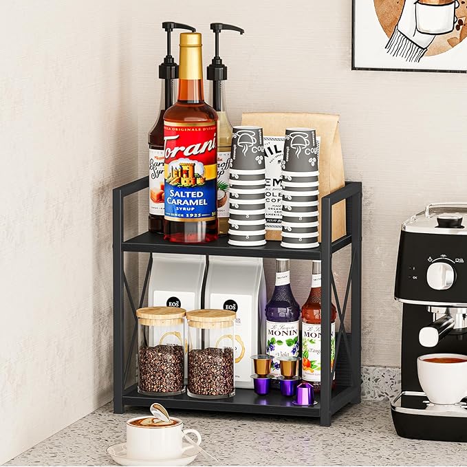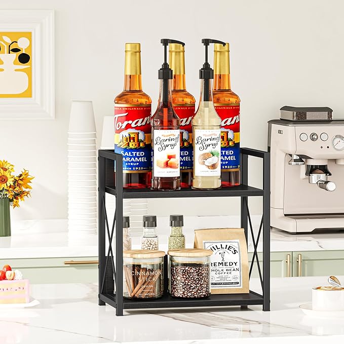 Giikin Countertop Organizer, 2 Tier Coffee Station Organizer for Desktop, Wood Counter Shelf Spice Rack for Kitchen (Black, M)