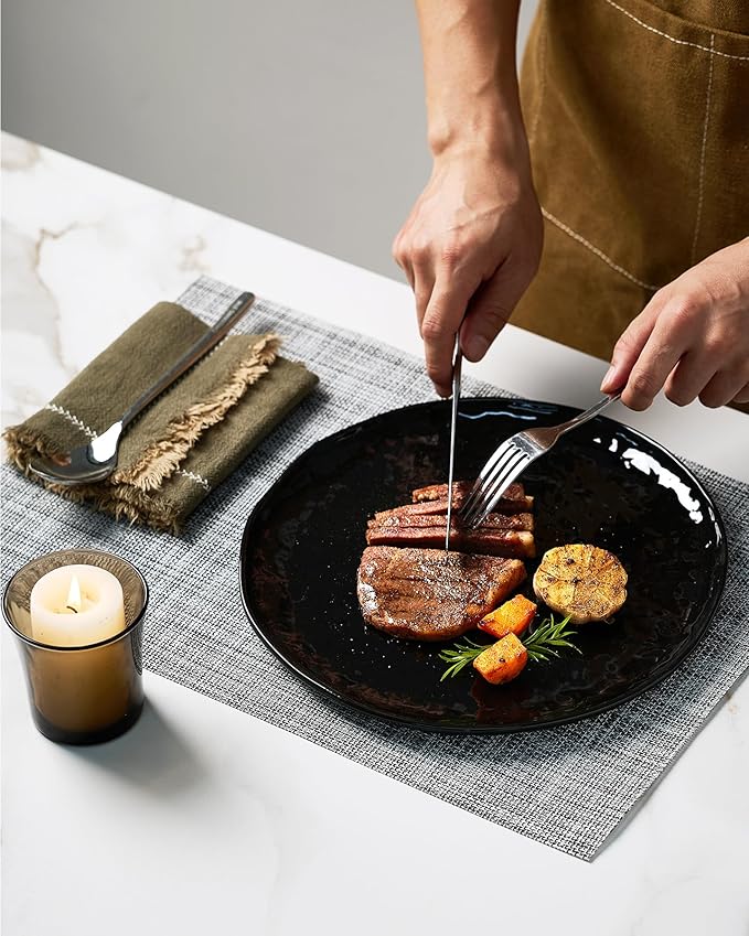 - 【What Will You Receive】Ideal for large families, couples, or individuals, 16 pieces black dishware set includes: 6 x 10.7" Large dinner plates, 6 x 8.7" salad plates, 6 x 8" Pasta bowl and 6 x 6" cereal bowls, perfect for daily meals, gatherings, and special occasions.