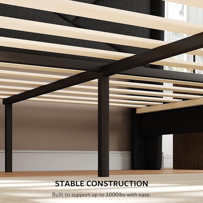 - Rock-Solid Stability: Crafted with a heavy-duty metal frame and 12 solid wood slats, it supports up to 1000 lbs with 8 reinforced points for ultra-sturdy sleep