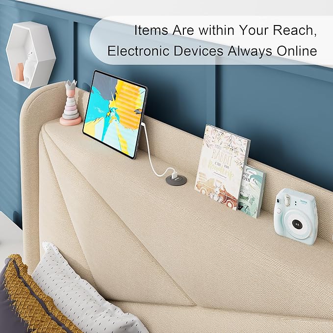 - Special Feature : Heavy-Duty Metal Frame, PD Type-C Fast Charging Station, Soft Linen Fabric, Squeak Resistant, Storage Wingback Headboard Heavy-Duty Metal Frame, PD Type-C Fast Charging Station, Soft Linen Fabric, Squeak Resistant, Storage Wingback Headboard