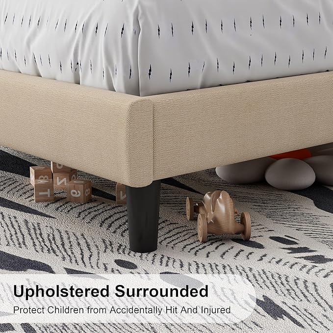 - Reinforced Bed Frame - Heavy-duty metal frame and 12 solid wood slats compose a central "+" structure to provide up to 1000lbs weight capacity. 8 support points make the bed frame more stable but won't scratch the floor.