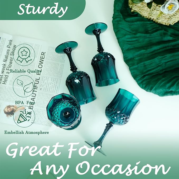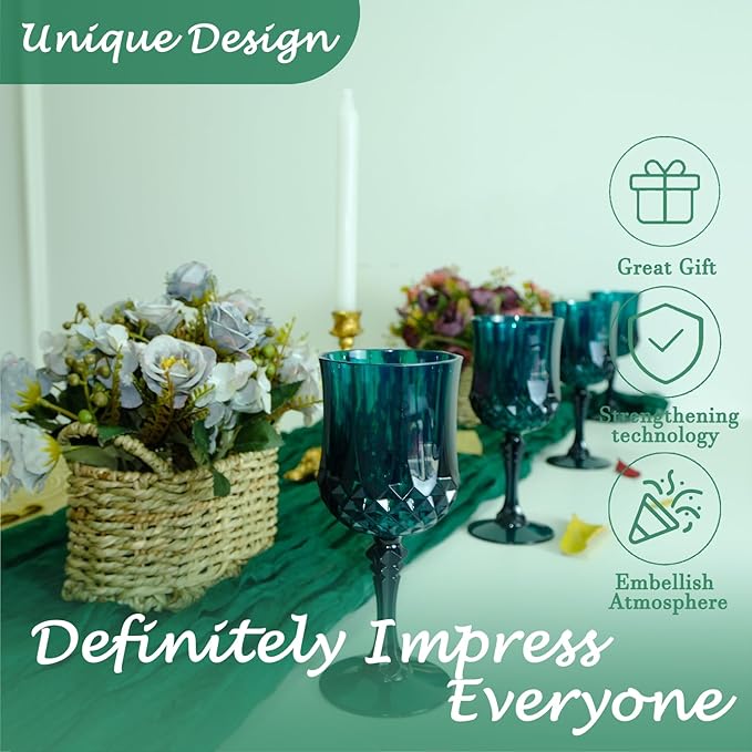 - 🍷🍷🍷【Product Description】 This set includes 48 retro-style dark green party plastic wine glasses, providing ample quantity to meet your daily use and replacement needs. The elegant and sophisticated design makes your wedding reception unique.