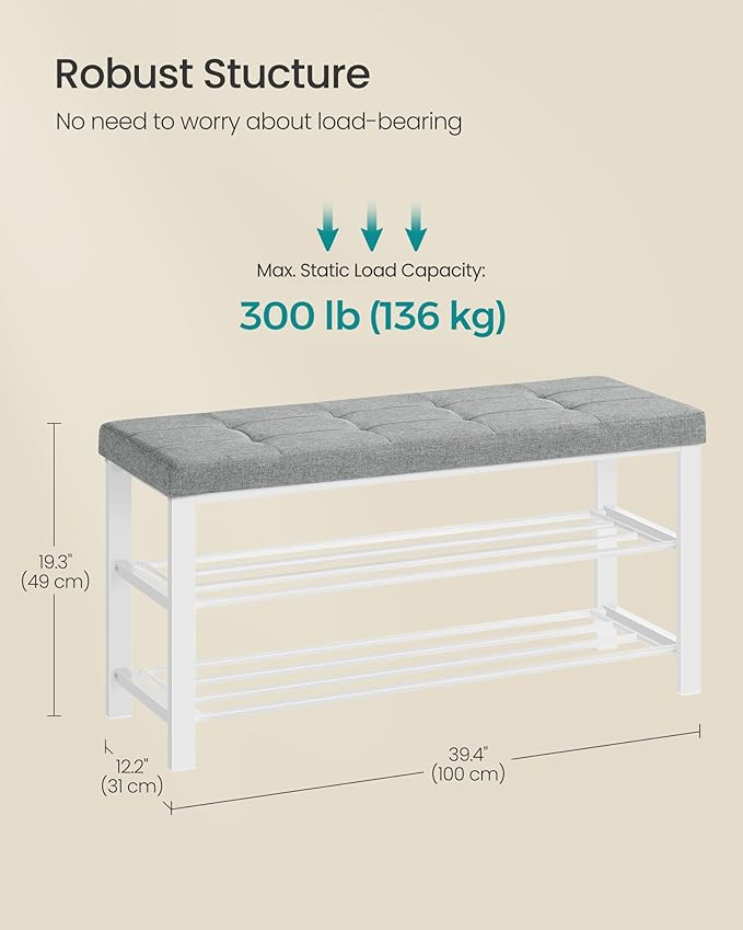 - [Strong Support] This shoe storage bench supported with a robust powder-coated steel frame offers firm and reliable support (max. static load 300 lb)