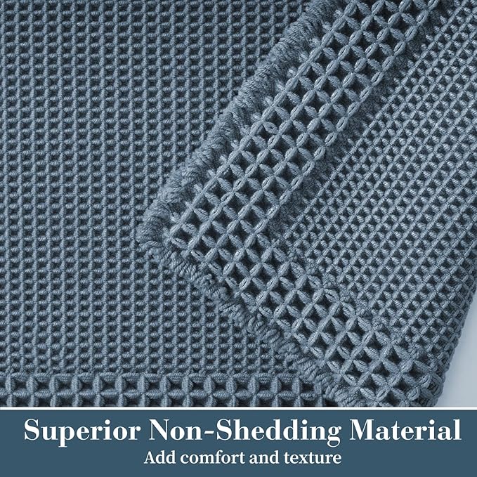 - WAFFLE DESIGN WITH TASSELS: Distinctive textured appearance adds a touch of stylish and texture to the bathroom decor. The waffle bath rugs can complement various bathroom styles, such as boho and farmhouse style.