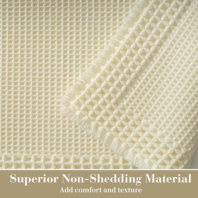 - WAFFLE DESIGN WITH TASSELS: Distinctive textured appearance adds a touch of stylish and texture to the bathroom decor. The waffle bath rugs can complement various bathroom styles, such as boho and farmhouse style.