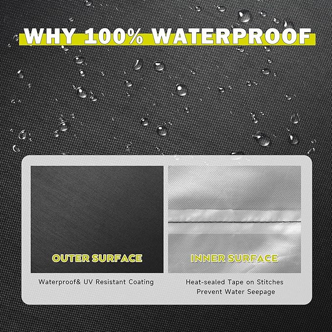 - WATERPROOF & ANTI-UV – Waterproof outer coating and heat-sealed tape on stitches prevent water seepage. Inner PU coating layer protects your outdoor griddle from damage caused by prolonged sun exposure