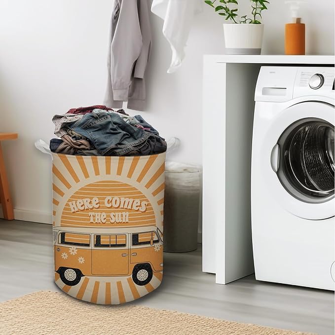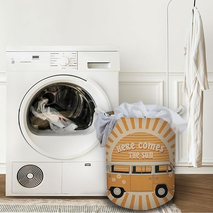 Here Comes the Sun Laundry Basket, 70s Retro Boho Sunshine Waterproof Collapsible Laundry Hamper Dirty Clothes Storage Toy Bin Organizer for Bathroom Bedroom Nursery Kids Room